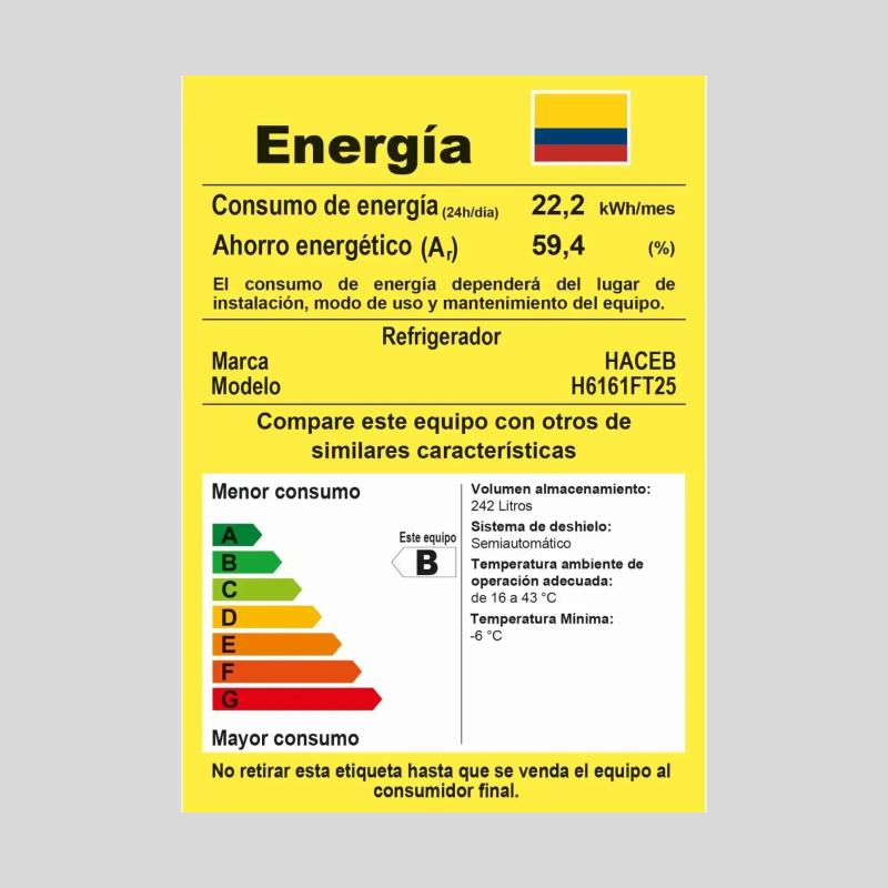 Nevera Frost HACEB N-220CE-TI diseñada para alargar la vida de tus alimentos: frío sectorizado y estable en cada zona, corrientes de frío óptimas, y compartimiento extra-frío para descongelar. Cuenta con bandeja de vegetales con control de humedad para que tus alimentos permanezcan frescos por más tiempo. ¡Lleva la tuya ahora!
